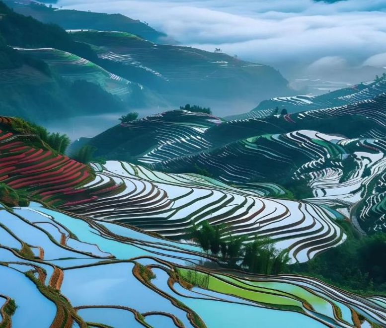 There are landscapes which, though rooted in the earth, seem as if they were born from a divine brush. In southern China, the Longji Terraced Rice Fields—literally the “Dragon’s Backbone”—offer one of the most breathtaking panoramas in Asia. For over 700 years, local ethnic communities have sculpted the mountains into a living masterpiece: a vertiginous weave of vegetal curves, rippling between sky and clouds.