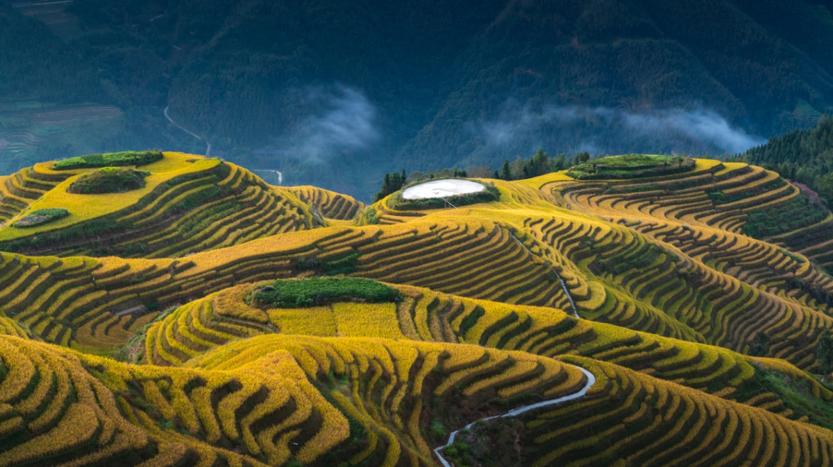 The Longji Terraced Rice Fields are located in Longsheng County, north of Guilin, in the Guangxi region of southern China. The name “Longji” refers to a series of rolling hills where rice fields have been carved into stepped terraces. Depending on the light and the season, these curves can appear liquid, metallic, or golden.